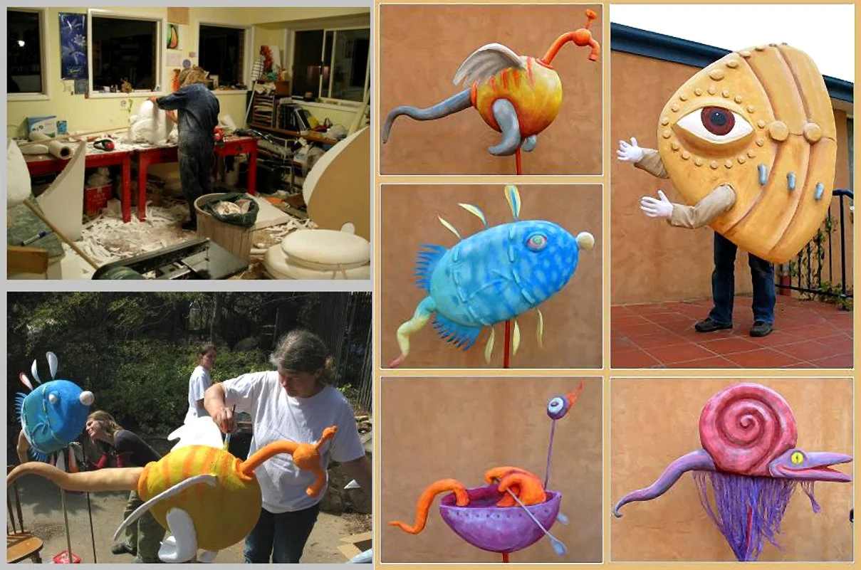 Aquasapiens (2005), a collaboration with Spare Parts Puppet Theatre, Fremantle, WA. I designed and helped construct a number of ‘land diving’ sea creatures who invades Murray Street Mall in central Perth during the summer of 2005. Director: Philip Mitchell, Puppet fabrication: Jirka Zmitko. More about the project.
